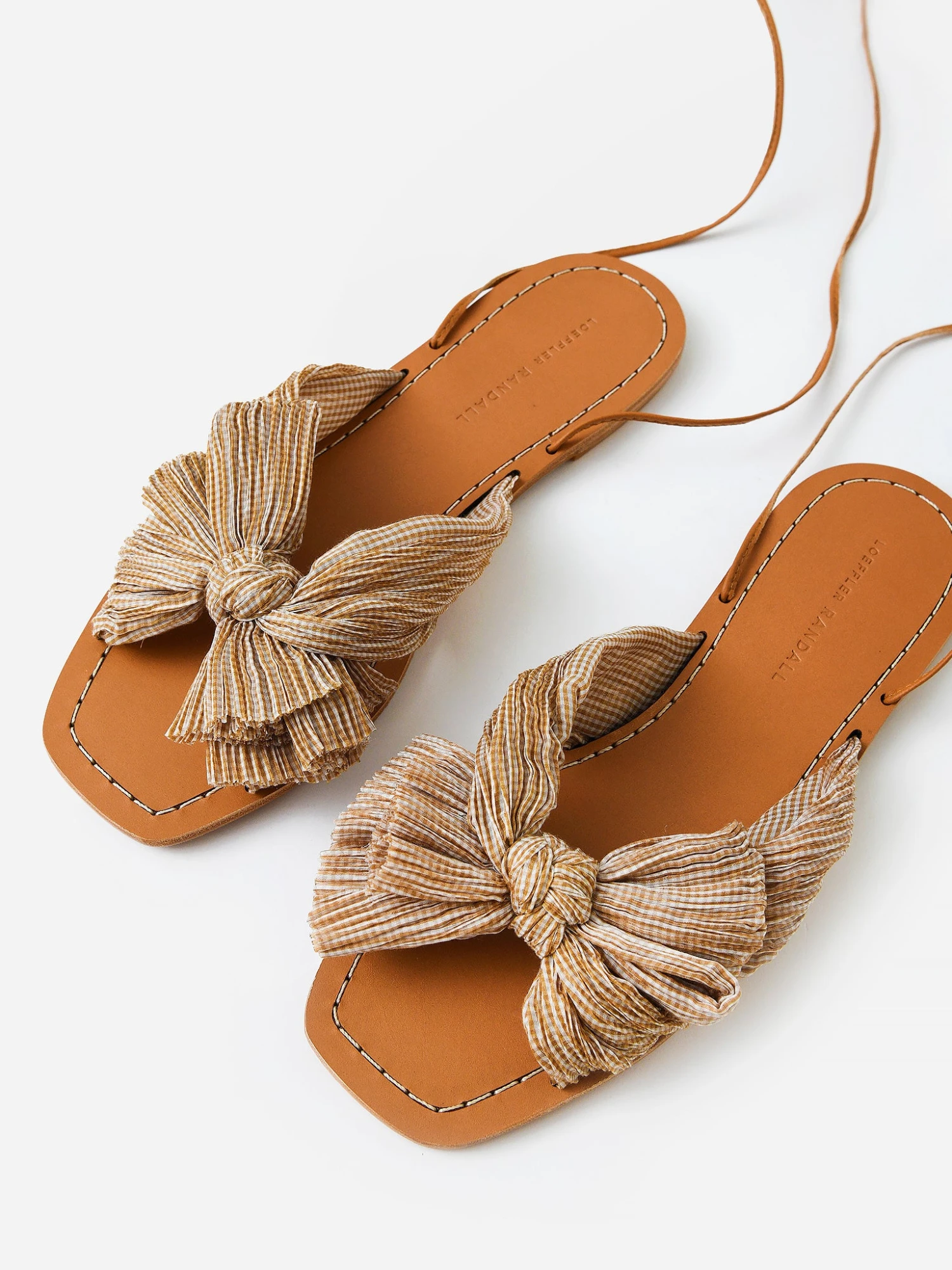 Wrap-style sandal with a pleated bow detail.