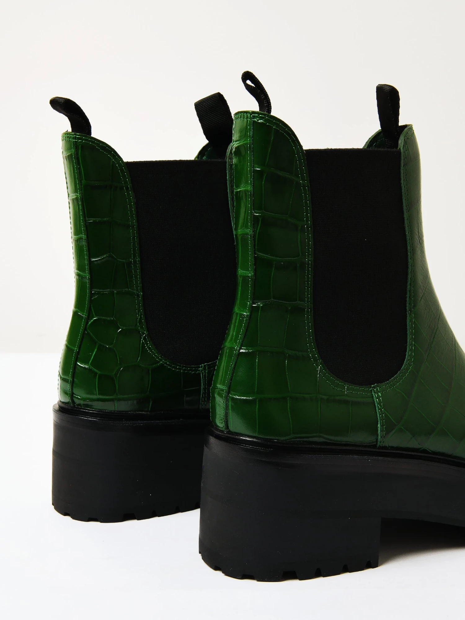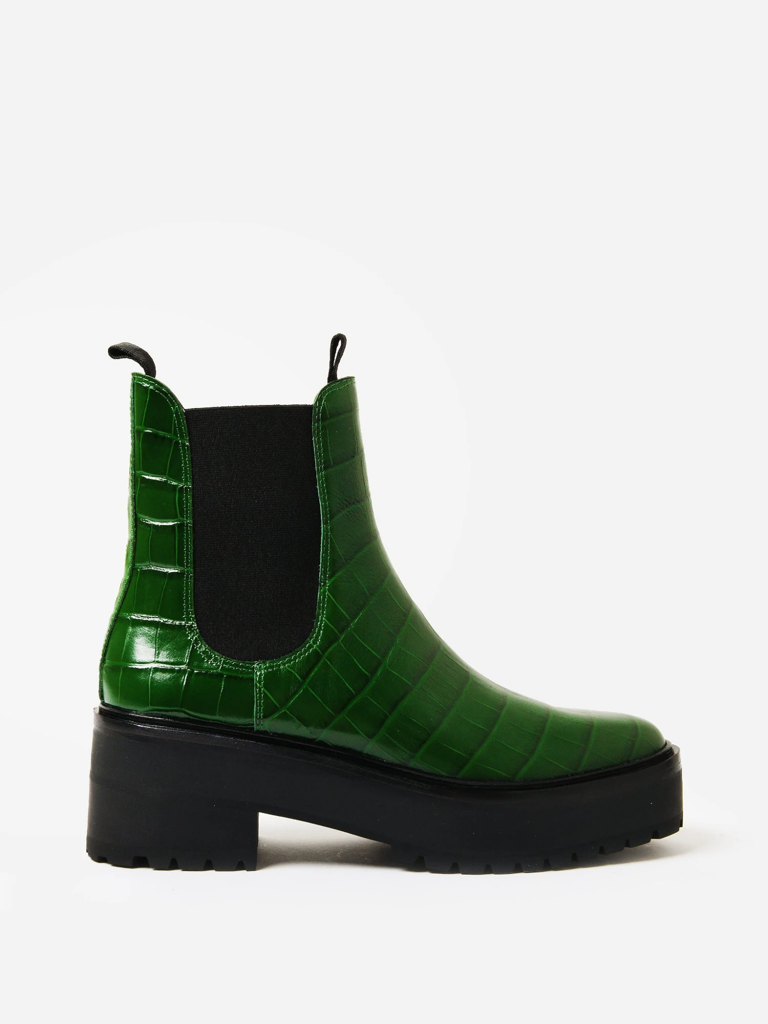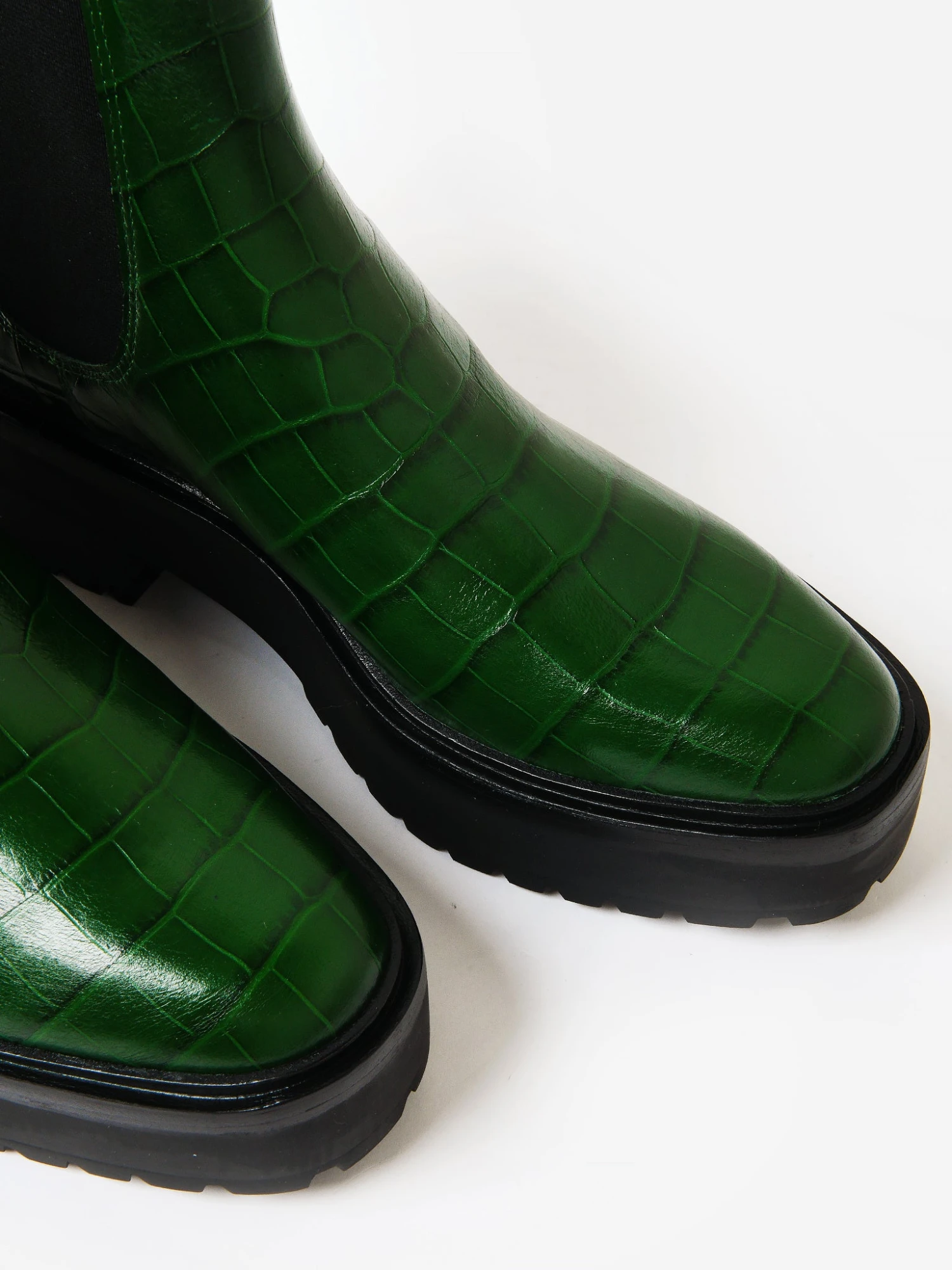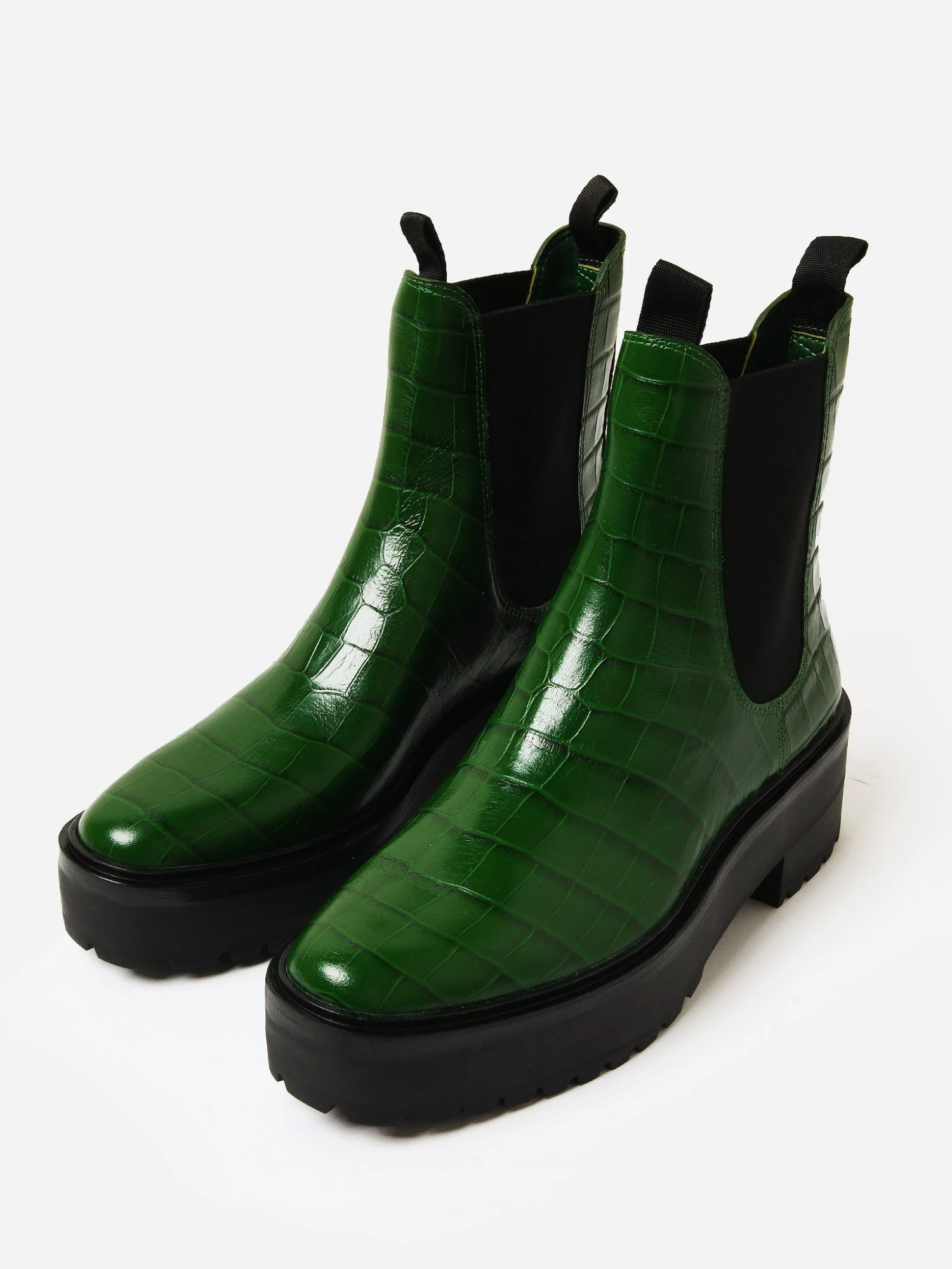 Chunky-soled Chelsea boot made from croc-embossed leather.
